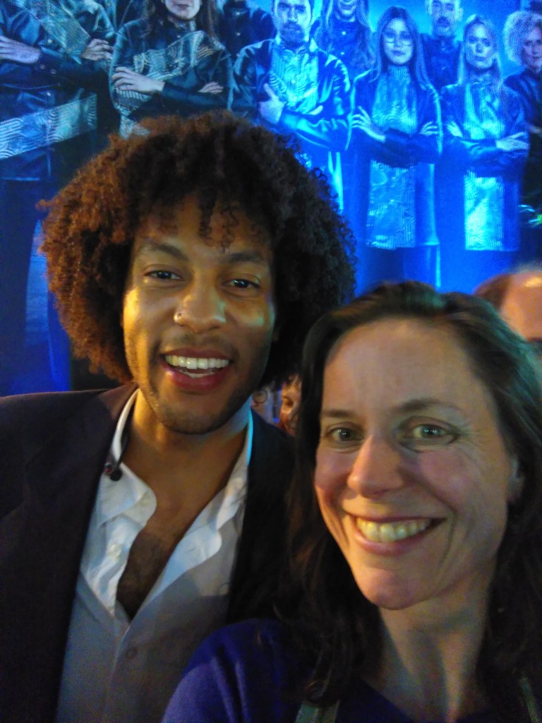 Op een gegeven moment kwam finalist Alexy in de buurt, ik kon de mensen die een selfie met hem ‘trokken’ aanraken…